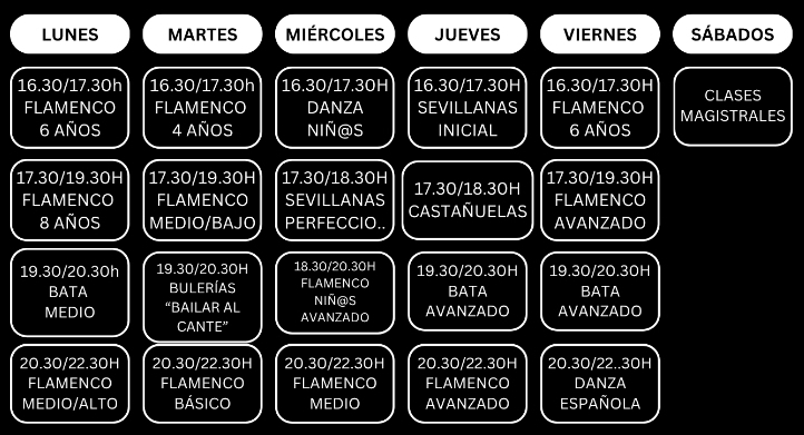 - Cada semana se trabajará sobre la improvisación de un palo del flamenco ( al final de la semana vendrán los músicos para llevar a la práctica todo lo trabajado)